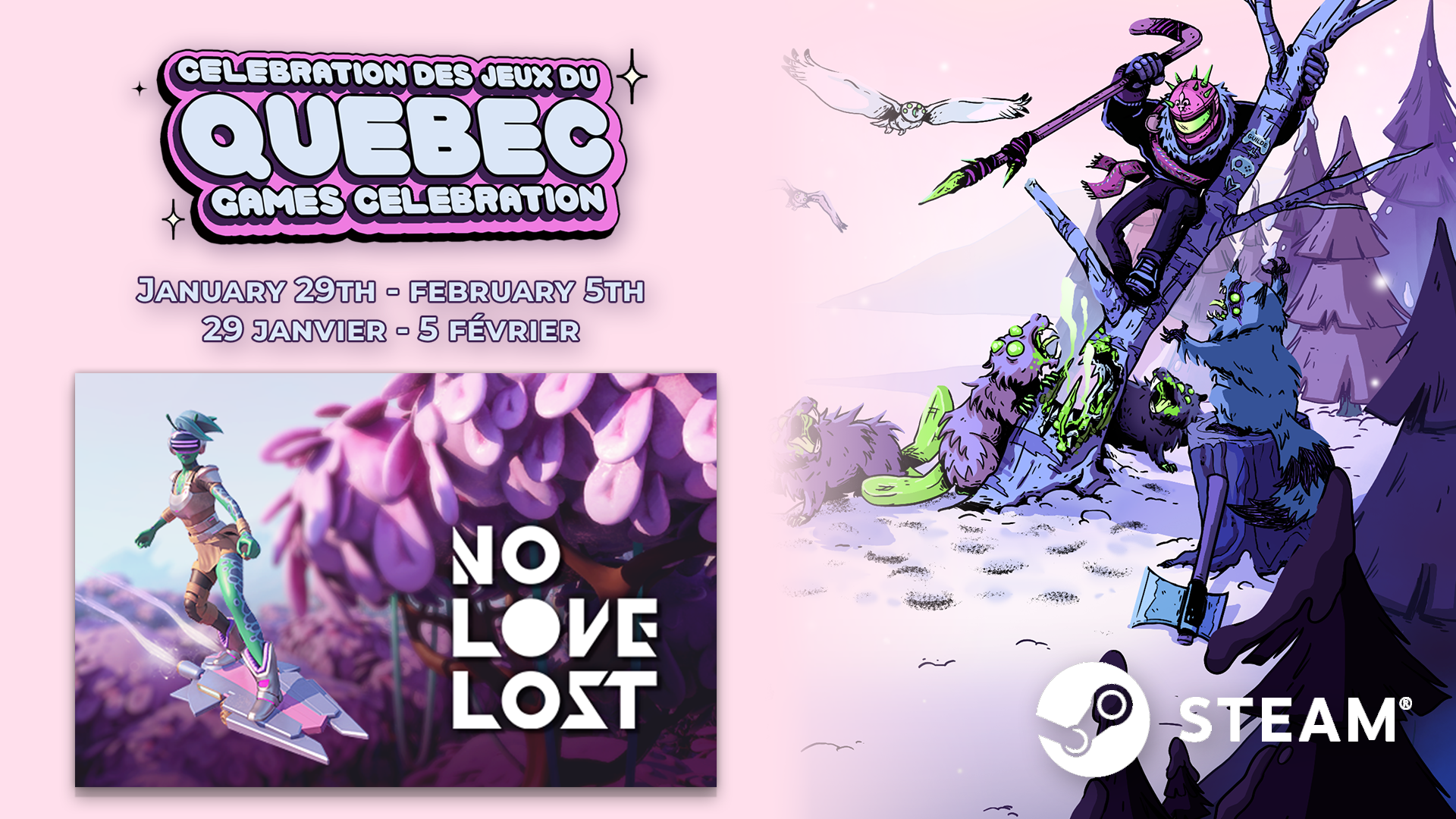 GAMES FROM QUEBEC STEAM SALE: Running from January 29th to February 5th, the Games From Quebec Steam Sale is a celebration of hundreds of locally made games from the province. Looking to try NO LOVE LOST?! Here’s your chance!! Throughout the sale, NO LOVE LOST will have FREE DEMO for you to try out!