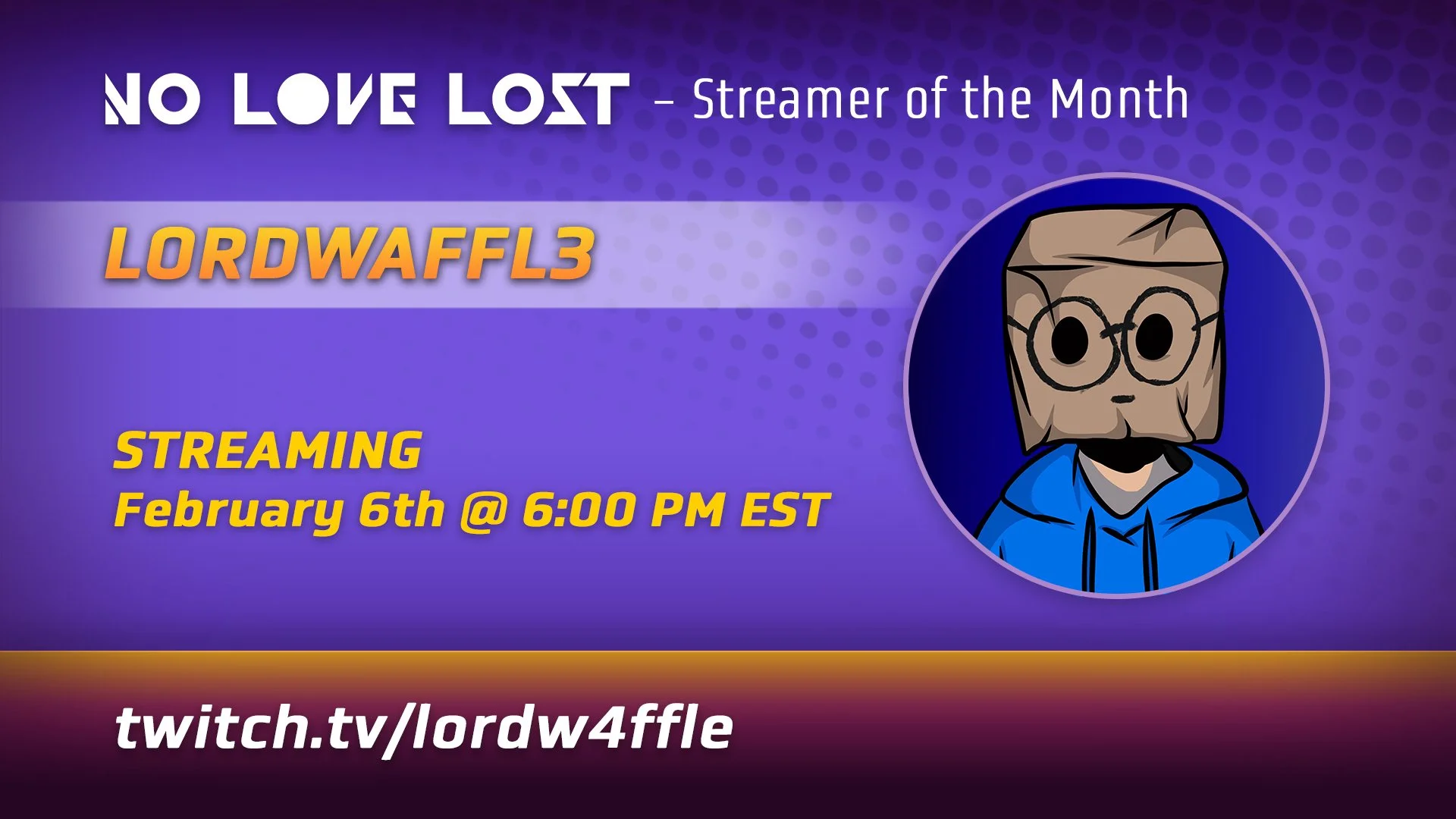Catch our Streamer of the Month, Lordw4ffle, bring the hype to NO LOVE LOST tonight as he streams our free demo @ 6 PM EST!!