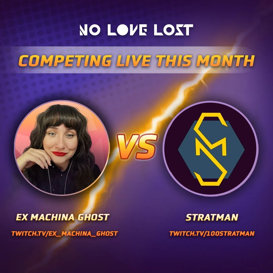 Meet your captains of this excursion (A.K.A our Streamers of the Month), ExMachina and 100Stratman! Throughout the playtest, they'll be playing, streaming and giving away NO LOVE LOST merch over on their Twitch Channels! Join the raids of these galactic champions for bragging rights or tune into their streams to be entered in their draws!